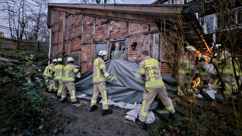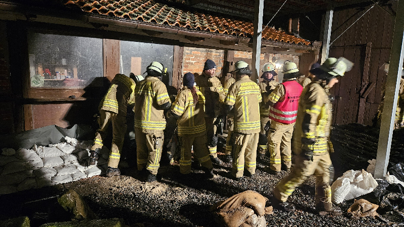 Die Feuerwehr wurde einer technischen Hilfeleistung alarmiert. Durch das Hochwasser droht ein Gebäude zu überfluten. Es wurde ein Wall aus über 3000 Sandsäcken zum Schutz errichtet. Zusammen mit dem Bauhof Neustadt wurden diese zur Einsatzstelle transportiert.