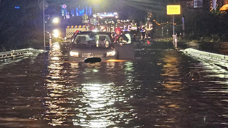 Wieder musste die Feuerwehr zu einem PKW im Hochwasser ausrücken. Heiligabend gegen 17:45 Uhr sind die Feuerwehren Basse, Neustadt,Bordenau, der ELW 0,5 Süd/Ost und die Tauchergruppe Lohnde zu einem PKW im Hochwasser an der Leinebrücke in Basse alarmiert. der PKW ist aus Richtung Basse ins Hochwasser gefahren. Besetzt war das Fahrzeug mit vier Insassen (2x Erwachsene, 2x Kinder alter unbekannt),diese wurden durch Einsatzkräfte von der Basserseite gerettet und dem Rettungsdienst zur Betreuung übergeben. Das Fahrzeug wurde durch vier Einsatzkräfte aus Neustadt und Bordenau auf die Brücke geschoben.