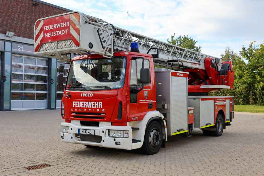 Die DLK 23/12 (Drehleiter mit Korb 23/12) wird für die Menschenrettung aus Höhen und Tiefen, sowie zur Brandbekämpfung eingesetzt.