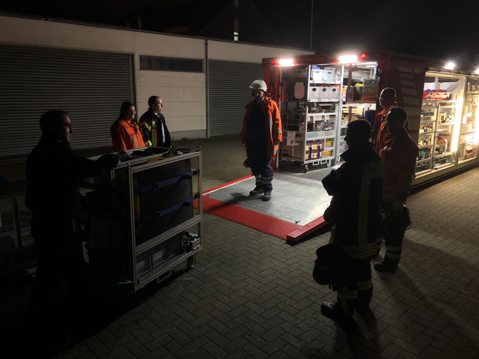 Auf Initiative des Ortsbrandmeister Dennis Hausmann aus Basse wurde 20 Mitgliedern seiner Ortsfeuerwehr am 28.03.2019 das neue Wechselladerkonzept samt Trägerfahrzeug, Kran und AB "Rüst" vorgestellt. Sebastian Grigat und Lars Schwieger zeigten den interessierten Gästen am Standort West die Besonderheiten der neuen Gerätschaften.