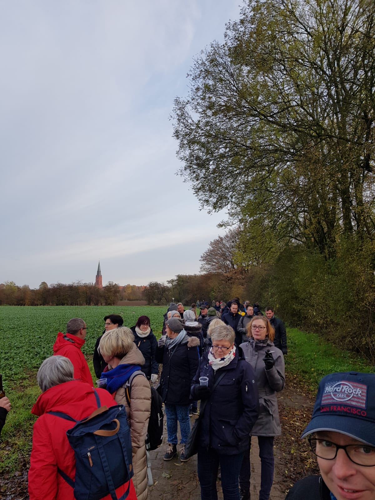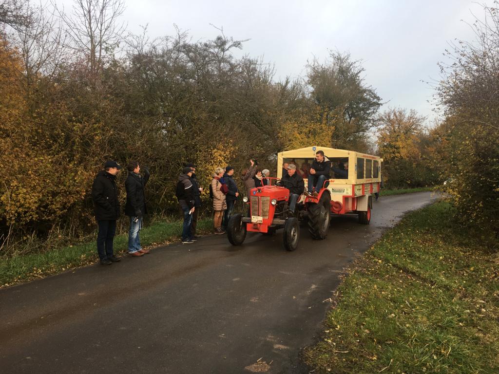 Im Anschluss ging es durch die Innenstadt zur Fischräucherei Dobberschütz, wo ein reichhaltiges Angebot an Fischvariationen und Getränken bereitgestellt wurde. Nach der Stärkung ging es 7 km querfeldein Richtung Waldgaststätte am Oyler Berg. Zwischendurch wurde noch eine kleine Pause eingelegt, bei der es Kaffee und Kuchen gab. Des Weiteren hatten die Verantwortlichen einen Planwagen organisiert, der von einem Oldtimer-Trecker gezogen wurde. Zusteigen konnten hier alle, denen die Füße wehtaten.