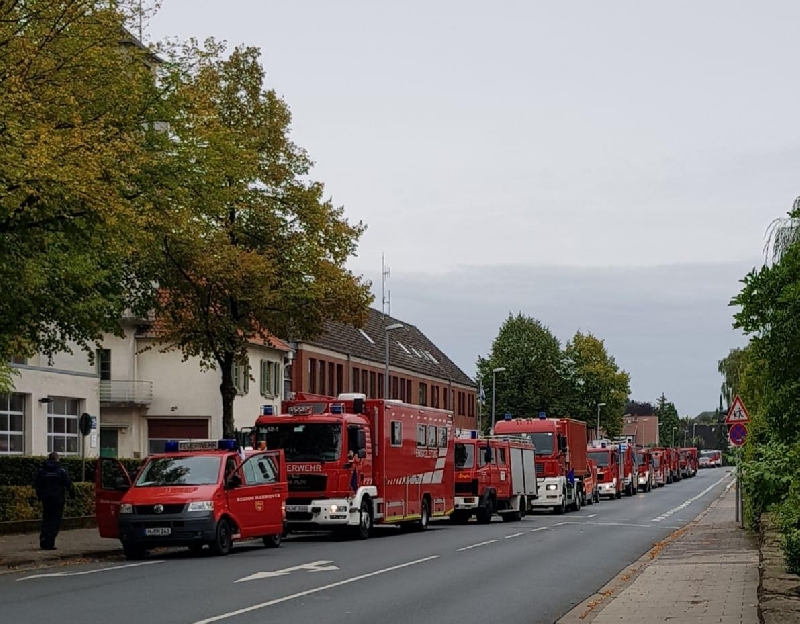 Aus diesem Grund startete am Sonntag, den 23.09.2018 gegen 10 Uhr ein Konvoi aus mehreren Einsatzfahrzeugen von der FTZ in Neustadt in Richtung Meppen, darunter auch das TLF 3000 der Ortsfeuerwehr Neustadt a. Rbge.samt Besatzung; die IUK-Einheit mit dem ELW 2 und dem GW IUK. Die Einsatzkräfte aus der Region sollen zunächst für 48 Stunden bei der Brandbekämpfung helfen