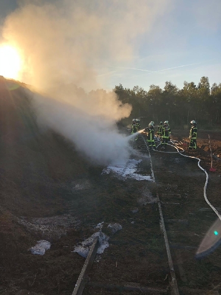 Im Moor zwischen Neustadt und Mardorf brannte eine Torfmiete.Die Feuerwehr legte eine Wasserversorgung in das Moor und speiste diese von der Moorstrasse aus ein. Mit drei Strahlrohren und Unterstützung eines Bagger wurde die Miete auseinander gezogen und abgelöscht.