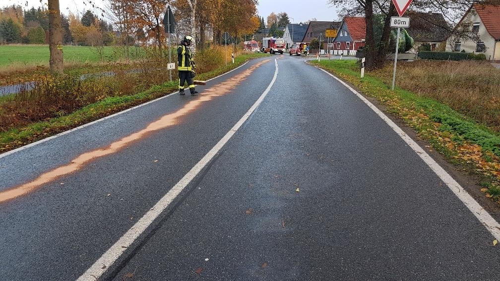 Die Feuerwehr ist von der Polizei zur Beseitigung einer Betriebsmittelspur alarmiert worden. Im Abzweigsbereich Wunstorferstraße -> Poggenhagen waren beide Fahrspuren mit Betriebsmittel verunreinigt, ein Kradfahrer hatte nach einem beinahe Sturz die Polizei alarmiert. Die Feuerwehr hat in den Kurvenbereichen die Gefahrenabwehr übernommen und die Betriebsmittel abgestreut.