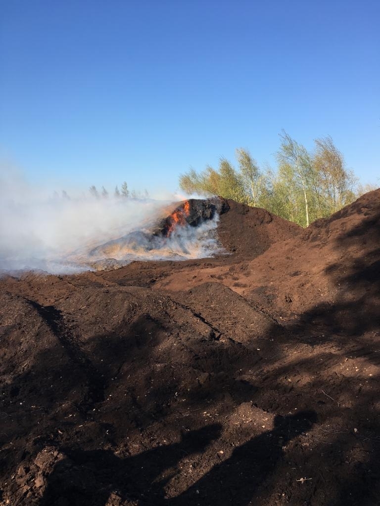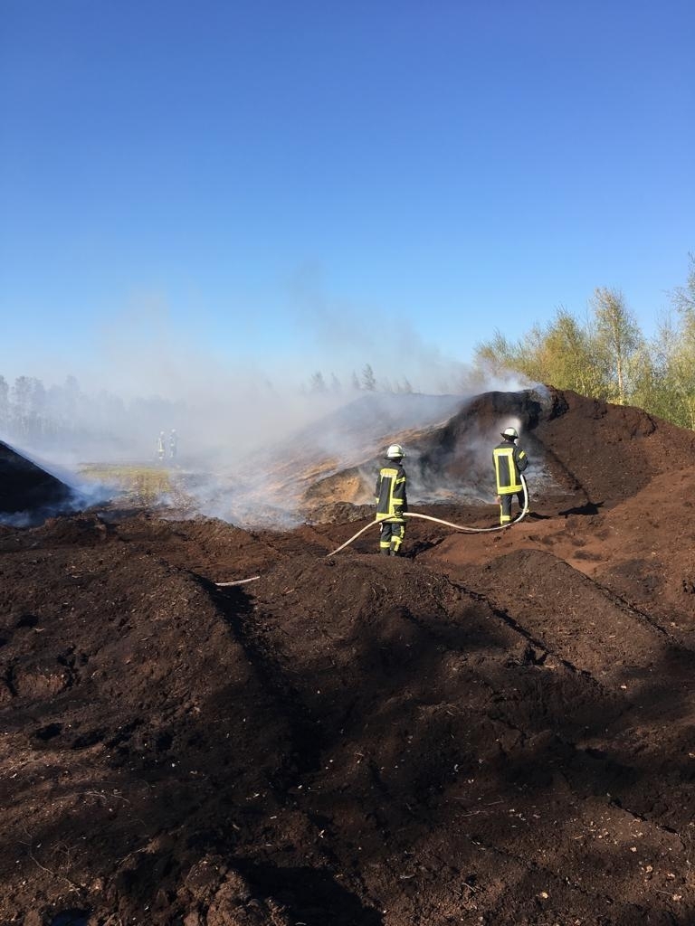 Die Feuerwehr ist zu einer brennenden Torfmiete im Moor alarmiert worden. Da die Einsatzstelle ca. 400m weit im Moor wurde eine Wasserversorgung von der Moorstraße aus aufgebaut und mit mehreren Tanklöschfahrzeugen Pendelverkehr gefahren um die Leitung einzuspeisen.