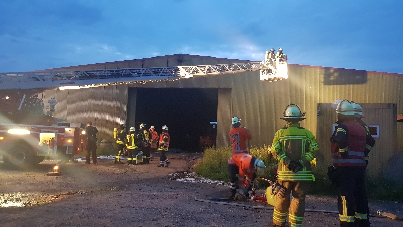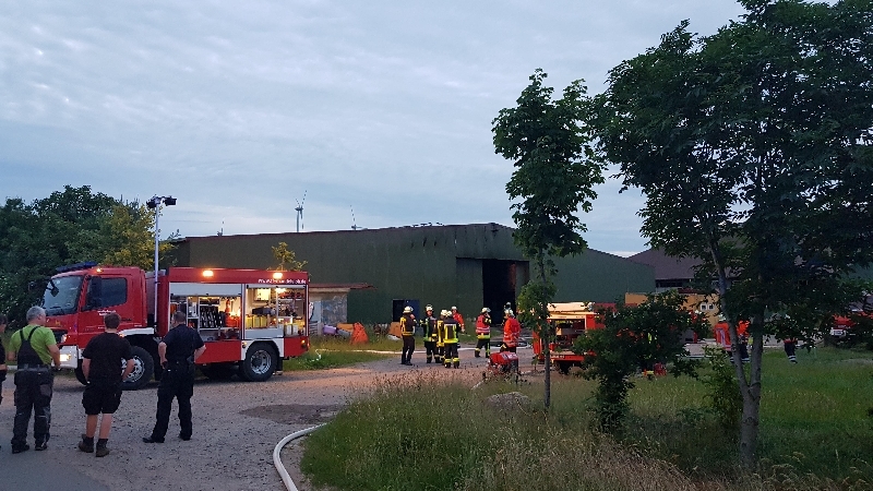 Am Pfingstsonntag-Abend wurde die Feuerwehr gegen 21.10 Uhr zum Brand einer landwirtschaftlich genutzten Halle in Wulfelade an der Lohbergstraße gerufen. Gemeldet war eine starke Rauchentwicklung. Als die ersten eintreffenden Feuerwehrkräfte die Lage erkundeten, wurde festgestellt, dass ein in der Halle abgestellter Radlader in Vollbrand stand. Da das Feuer auf das Gebäude und die weiteren darin befindlichen Gerätschaften (Mähdrescher, Radlader und ca. 1.000 m³ Heu und Stroh) überzugreifen drohte, wurde die Alarmstufe auf B3 erhöht. Dadurch wurden weitere Kräfte angefordert.