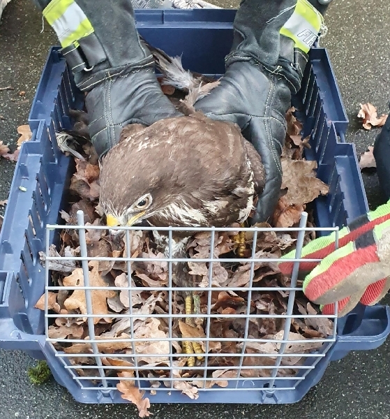 Der verletzte Greifvogel wurde durch die Feuerwehr in die Wildtierstation nach Sachsenhagen transportiert.