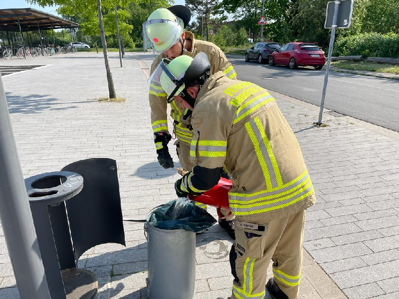 Die Feuerwehr ist zu einem Papierkorbbrand hinter dem Bahnhof alarmiert worden. Das Feuer konnte mit 10 Liter Wasser aus der Kübelspritze gelöscht werden.