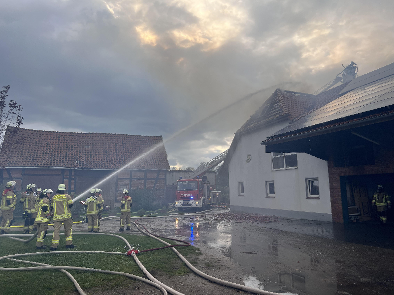 und Borstel alarmiert wurden. Des Weiteren wurde die Feuerwehr Rodewald aus dem Nachbarlandkreis Nienburg zur Unterstützung angefordert. Mit mehreren Trupps im Innen- und Außenangriff wird das Feuer zur Stunde noch bekämpft. Hierfür müssen z.T. Zwischendecken und Zwischenwände geöffnet und Dämmmaterial entfernt werden. Über die Neustädter Drehleiter wird das Dach großflächig geöffnet um auch von außen Brandnester im Dachstuhl ablöschen zu können. Die Stadtwerke haben das Brandobjekt stromlos geschaltet und die Wasserversorgung abgeschiebert.