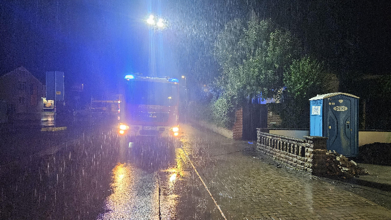 Knapp 1,5 Stunden nach dem die Kameraden eingerück waren, zog erneut eine Starkregenfront mit Gewitter über das Stadtgebiet. Die Grube wurde dadurch erneut geflutet und musste erneut ausgepumpt werden.