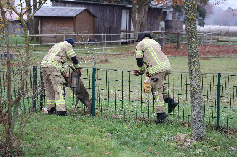 Die Feuerwehr wurde am Freitagmorgen zu einem Spielplatz in den Buchenweg alarmiert. Dort war ein Reh in einem Stabmattenzaun eingeklemmt. Die Einsatzkräfte befreiten das Tier und haben es nach Begutachtung eines Jagdpächters in den natürlichen Lebensraum entlassen.