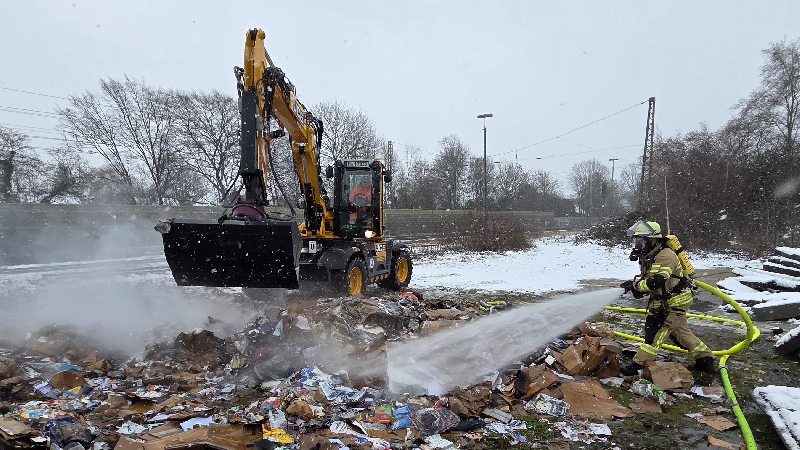 Der Brand des Altpapiers wurde anschließend unter Atemschutz mit zwei Strahlrohren gelöscht. Da das Altpapier im Müllwagen stark verpresst war, gestaltete sich das Auseinanderziehen des abgeladenen Materials zeitaufwendig. Mit Unterstützung eines Baggers vom Bauhof wurde der Papierhaufen Stück für Stück auseinandergezogen, um alle Glutnester freizulegen und gezielt abzulöschen. Die Feuerwehr Neustadt war inklusive der umfangreichen Nachlöscharbeiten rund 2,5 Stunden im Einsatz.