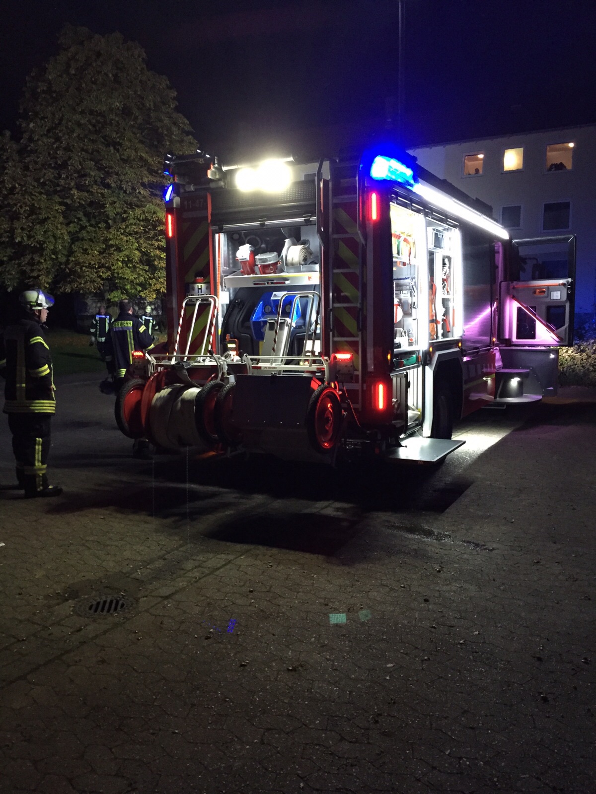 Auf dem Herd fing Essen Feuer. Das Feuer griff auf die Dunstabzugshaube über. Das Feuer wurde mit einem Kleinlöschgerät abgelöscht.