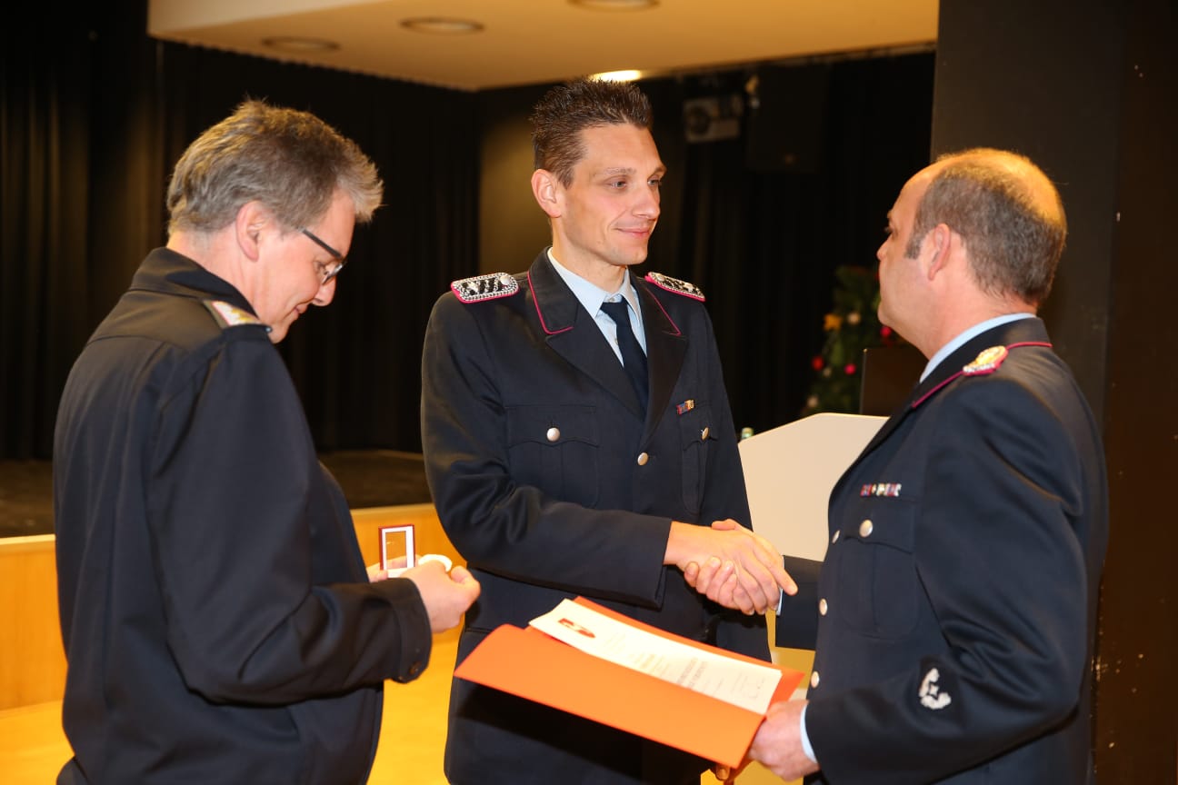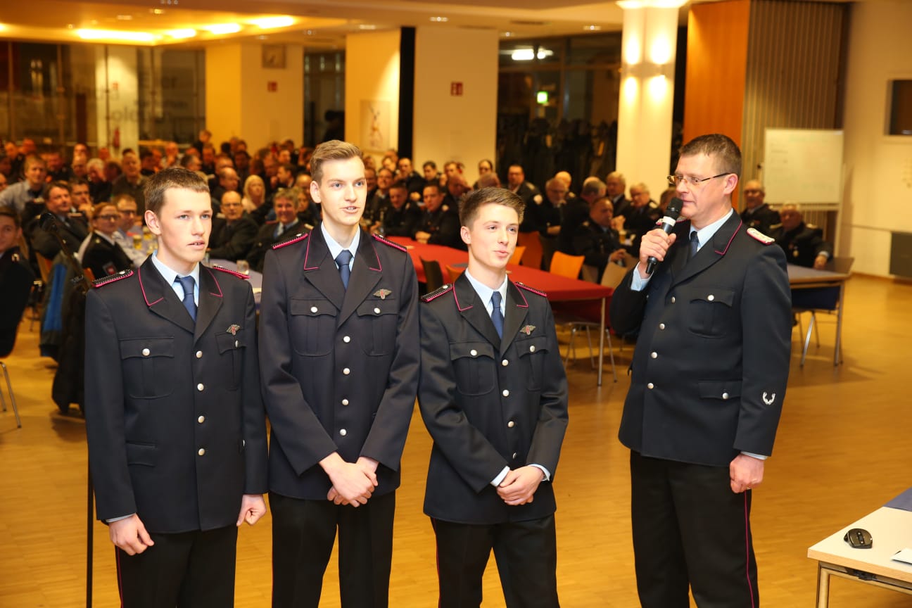 Aufgrund der Tatsache, dass zur diesjährigen Veranstaltung durch die Fahrzeugübergaben mit mehr Teilnehmer/-innen gerechnet wurde, reichte der Platz im Gerätehaus in der Lindenstraße nicht aus, weshalb die Jahresdienstversammlung in der Mensa der KGS stattfand.